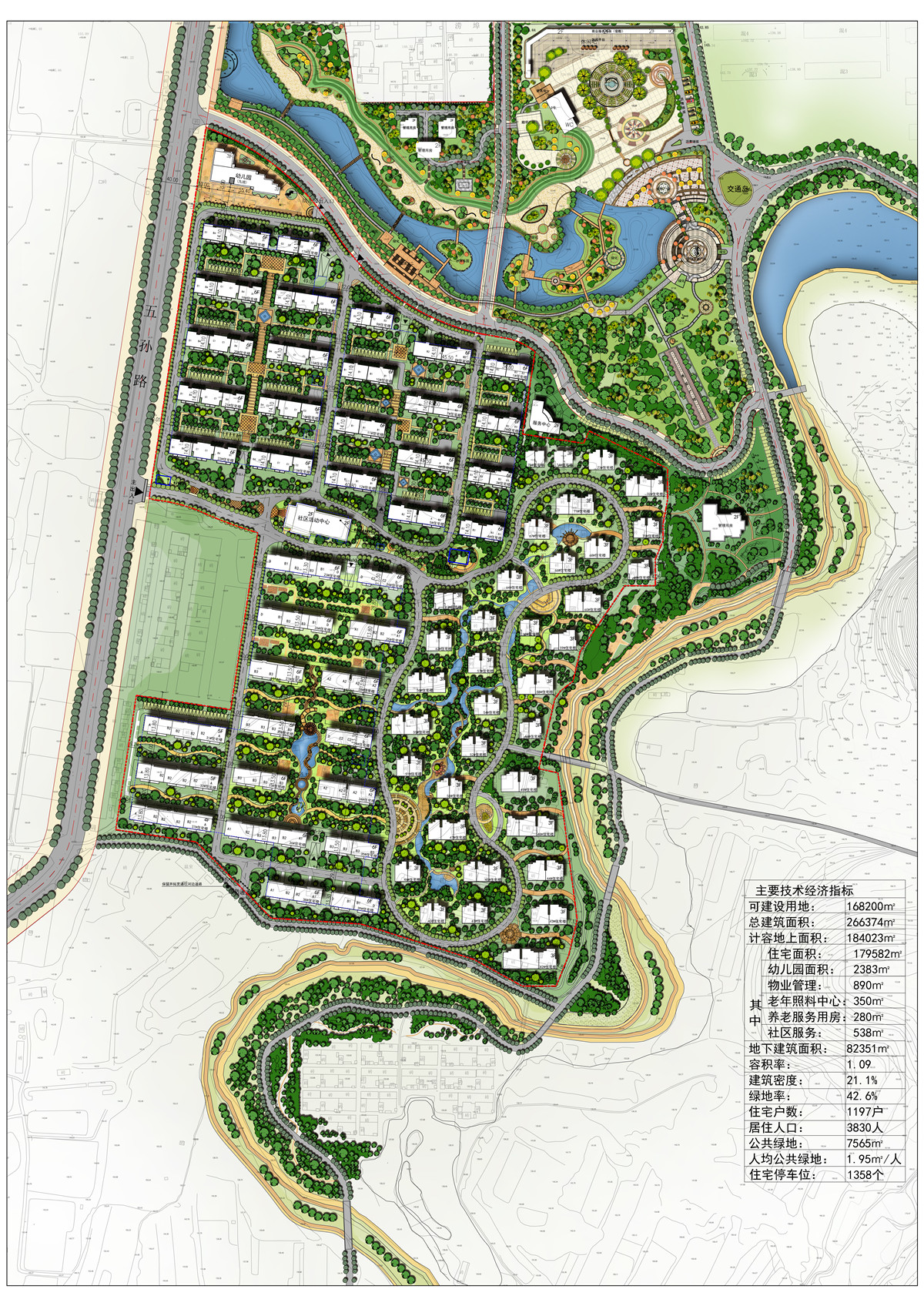 规划用地总用地约16.82公顷,总建筑面积257884平方米。其中地上总建筑面积178833平方米,含住宅建筑面积173076平方米,幼儿园面积2670平方米,物业用房890平方米,社区及配套用房2197平方米;地下建筑面积:79051㎡,含车库和储藏室;容积率为1.06。