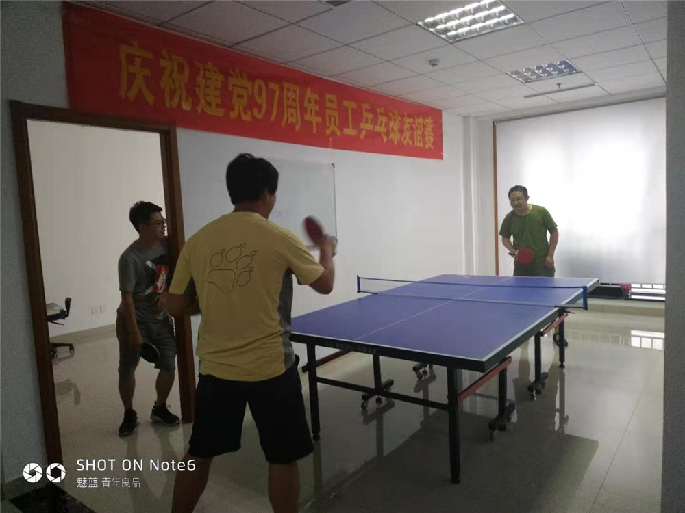 在2018年7月1日,为庆祝我党成立97周年,公司党支部组织了一场乒乓球比赛,公司员工积极参与,丰富了大家的业余活动,增进友谊、团结互助,对比赛获奖选手进行了颁奖,提高全体员工的身体素质。